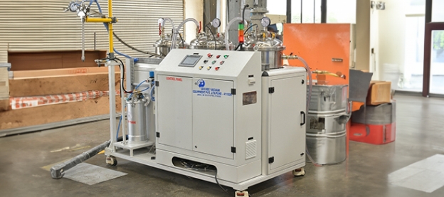 The plant can handle resin mixing ranging from 5 kg to 500 kg and is specially designed for high vacuum degassing to remove air bubbles.